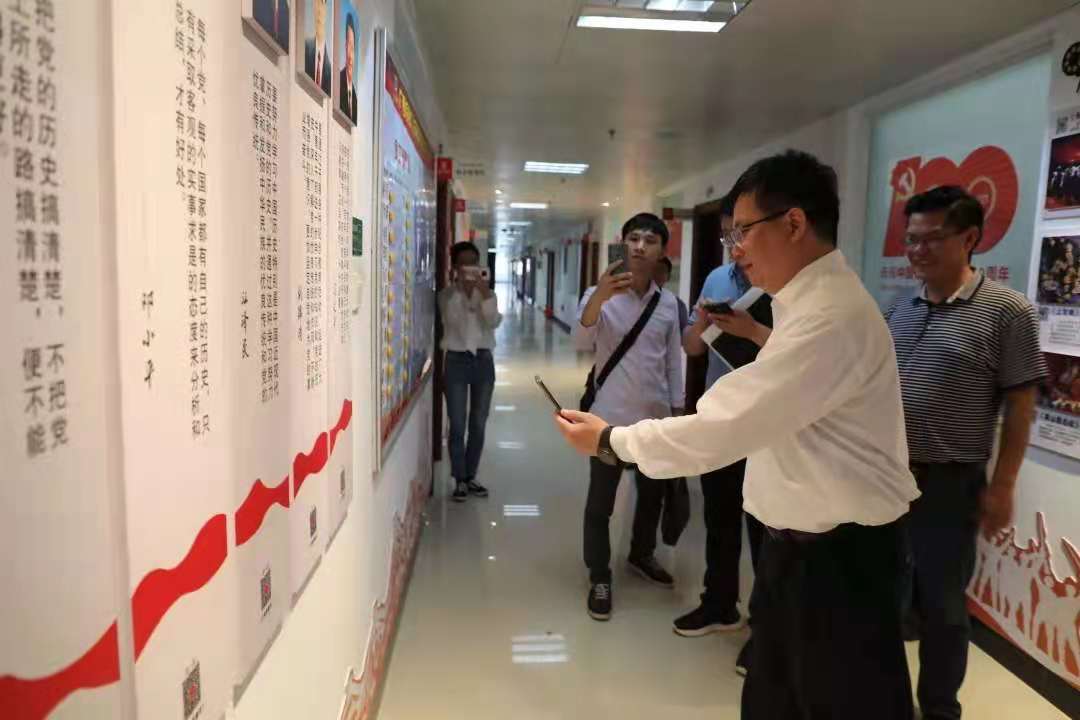 趙文刊一行先后在集團(tuán)公司大門、一樓大廳、廣達(dá)公司等地檢查了集團(tuán)公司黨史學(xué)習(xí)教育宣傳氛圍,查看宣傳板報(bào)、宣傳欄、LED、大屏幕等宣傳情況,并參觀了廣達(dá)公司黨支部。