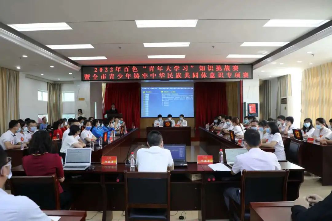 本次比賽由共青團百色市委員會、百色市民族宗教事務委員會、百色市教育局聯(lián)合主辦,競賽賽制設有“必答題”“搶答題”“風險題”三個環(huán)節(jié)。比賽內(nèi)容包括習近平新時代中國特色社會主義思想;習近平總書記系列重要講話精神;一百年來在黨的領(lǐng)導下中國青年運動史;國情、區(qū)情、時事政治;團章、團史、團務知識;“青年大學習”網(wǎng)上主題團課題目等。
