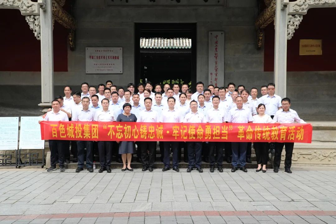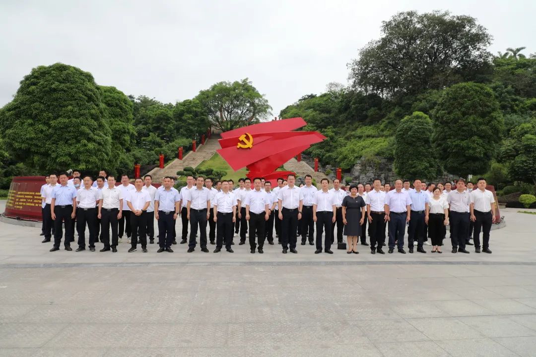 為進(jìn)一步持續(xù)鞏固和深化拓展黨史學(xué)習(xí)教育活動(dòng)成果,繼承和發(fā)揚(yáng)革命傳統(tǒng),傳承紅色基因,感悟初心使命,進(jìn)一步凝聚改革發(fā)展力量,奮力推動(dòng)經(jīng)濟(jì)社會(huì)高質(zhì)量發(fā)展。2022年6月29日上午,百色城投集團(tuán)黨委書(shū)記、董事長(zhǎng)韋生率隊(duì)到“不忘初心 牢記使命”主題園、紅七軍軍部舊址-粵東會(huì)館、百色起義紀(jì)念碑等地開(kāi)展“不忘初心鑄忠誠(chéng)·牢記使命勇?lián)?dāng)”革命傳統(tǒng)教育活動(dòng)。集團(tuán)公司領(lǐng)導(dǎo)班子成員、市管干部、職業(yè)經(jīng)理人,各黨支部書(shū)記參加活動(dòng)。